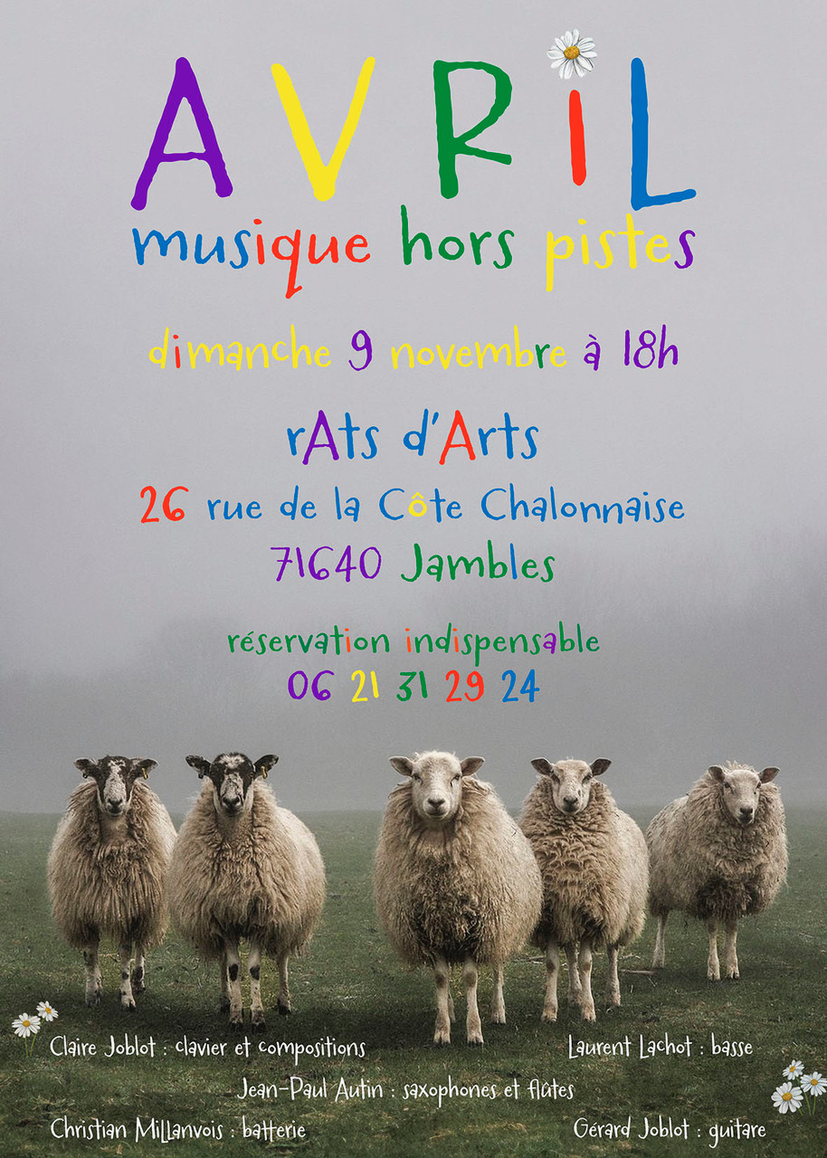 Entre musique écrite et improvisation, Avril est un quintet avec des compositions originales autour d’une musique d’aujourd’hui, d’inspiration jazz, non conformiste, ludique, espiègle … une musique qui raconte des histoires.